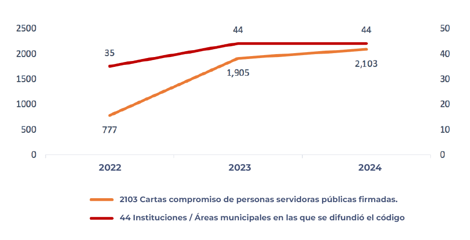 La difusión del Código de Ética, ha permitido que existan más personas servidoras públicas que conozcan el documento, al mismo tiempo, se promueve su cumplimiento, esto con base a las cartas de adhesión de cada persona informada, lo que refleja que se conocen los principios, valores, directrices y reglas de integridad que contiene el Código.